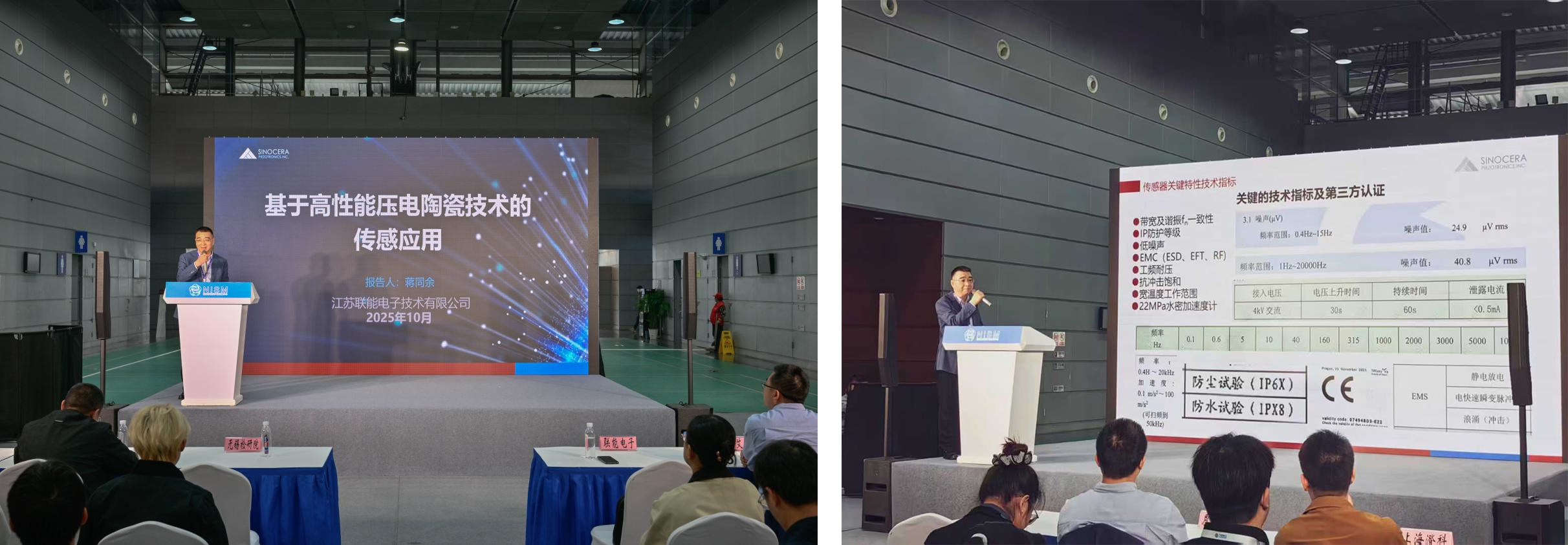 除了精彩的产品展示,联能电子在行业交流领域同样大放异彩。在2025物联网感知装备监测与应用技术沙龙上,公司常务副总蒋同余先生受邀作为特邀专家,发表了题为《基于高性能压电陶瓷技术的传感应用》的主题演讲。