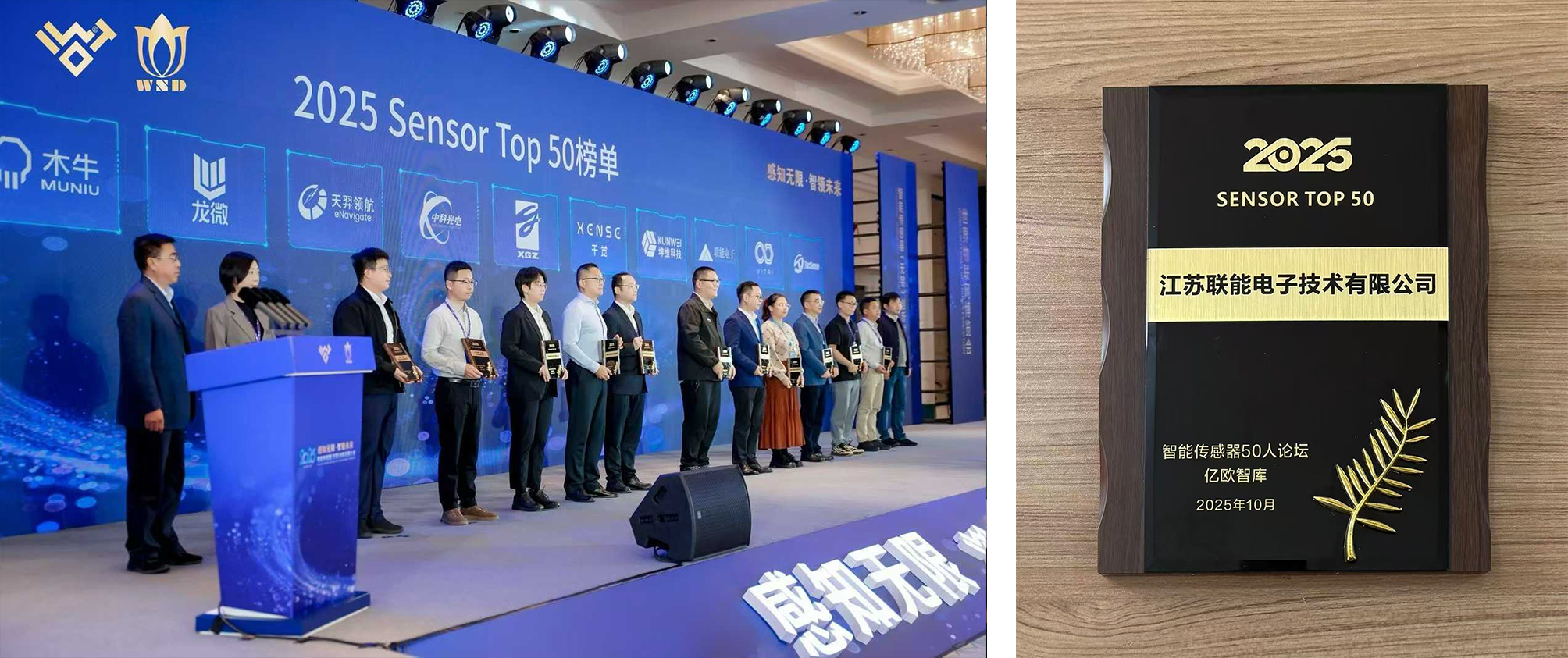展会期间,另一重磅喜讯传来——江苏联能电子技术有限公司凭借在传感器领域的突出贡献、强大的技术研发实力和优异的市场表现,成功荣登“2025 sensor TOP50榜单”!这一荣誉是行业对公司综合实力的高度认可,更是联能电子持续深耕传感器领域的有力见证。